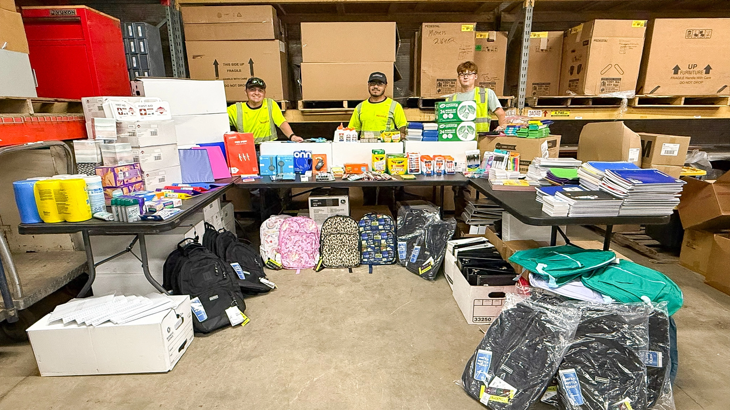 Los suministros iban desde artículos tradicionales de la lista de material escolar, como lápices, cuadernos, ceras y rotuladores fluorescentes, hasta accesorios tecnológicos, como auriculares, bastoncillos para los oídos y ratones de ordenador. También recogimos artículos de higiene y limpieza como desodorantes, toallitas desinfectantes y bolsas de plástico resellables, y Michels donó 100 botiquines de primeros auxilios.